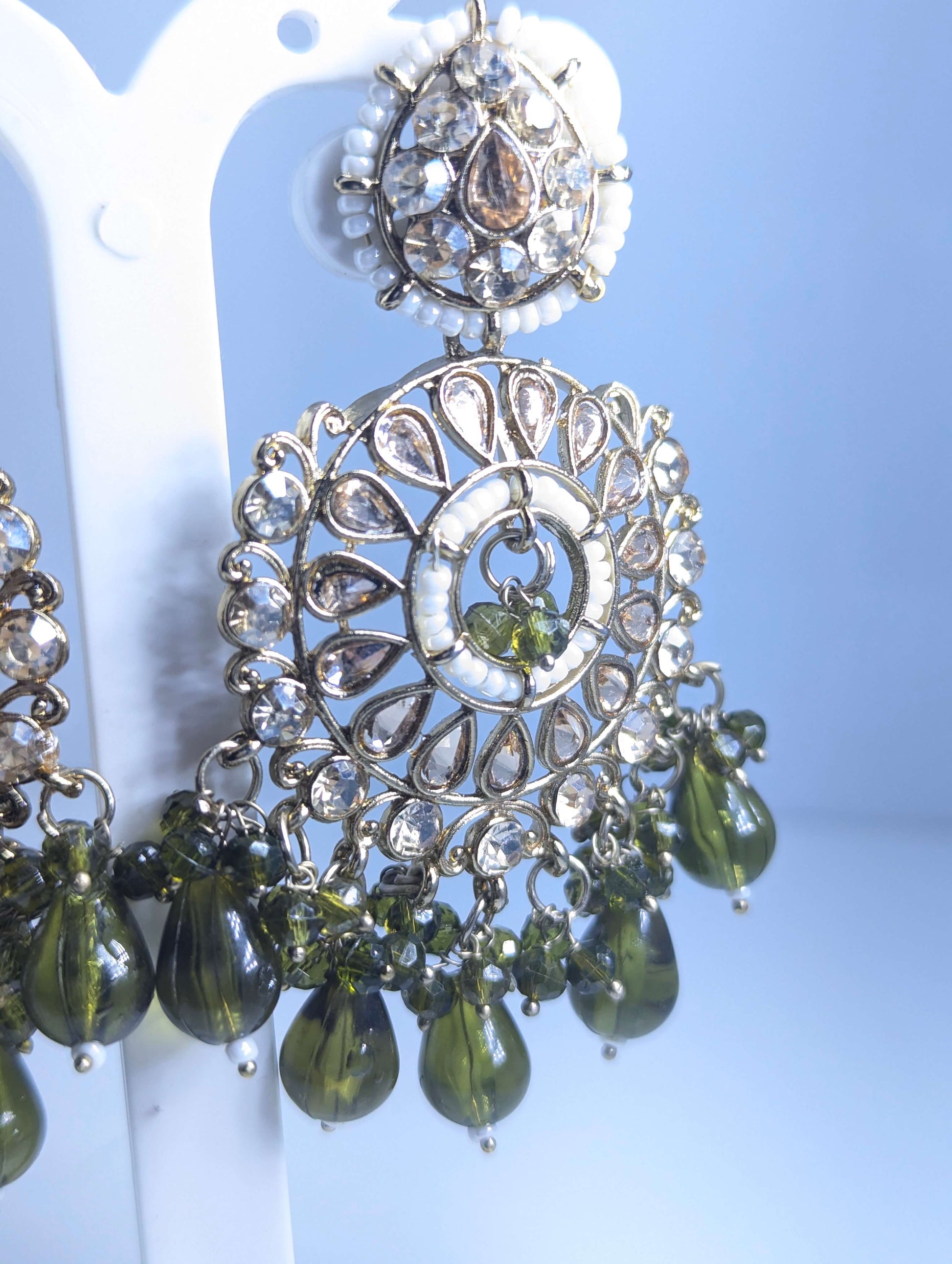 These dazzling kundan jhumkas capture traditional elegance with their intricate circular motifs, radiant kundan stones, and playful bead drops. The statement design adds a festive charm to any ethnic ensemble, perfect for weddings, parties, and joyful occasions.